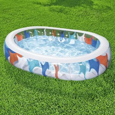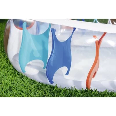 Zie hoe je kleintjes veel plezier beleven in de achtertuin met dit geweldige en stabiele Bestway familiezwembad. Het ovale speelbad is doorzichtig, met kleurrijke oppervlakken met I-profiel constructie.