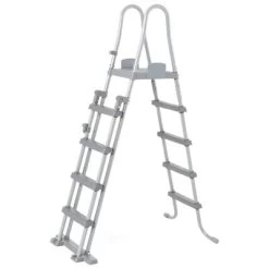 De elektrische filterpomp is een onderdeel van het circulatiesysteem om het water schoon te houden. Het anti-microbiële filterpatroon helpt voorkomen dat algen, schimmels en andere microbiële bacteriën in je zwembad groeien. De ChemConnect dispenser onderhoudt en zorgt voor schoon en gezond zwembadwater. De dispenser zorgt voor een stabiel chloorniveau dat nodig is voor een juiste chemische balans. De zwembadladder helpt je om veilig in en uit het zwembad te stappen. De treden aan de ene kant van de ladder kunnen naar de bovenkant worden verplaatst, wat helpt voorkomen dat kleine kinderen op de ladder klimmen om het zwembad te betreden. Dit zwembad is gemakkelijk op te vouwen voor opslag en transport wanneer het niet wordt gebruikt.