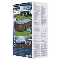Je beleeft veel plezier met familie en vrienden in deze Bestway Power Steel zwembadset, waarvan de ovale vorm meer ruimte biedt om te zwemmen en te spelen. Dit bovengrondse zwembad combineert duurzaamheid en stijl en de rattan opdruk geeft je tuin een vleugje luxe.