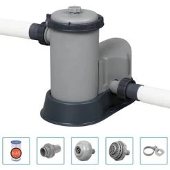De elektrische filterpomp is een onderdeel van het circulatiesysteem om het water schoon te houden. Het anti-microbiële filterpatroon helpt voorkomen dat algen, schimmels en andere microbiële bacteriën in je zwembad groeien. De ChemConnect dispenser onderhoudt en zorgt voor schoon en gezond zwembadwater. De zwembadladder helpt je om veilig in en uit het zwembad te stappen. De treden aan de ene kant van de ladder kunnen naar de bovenkant worden verplaatst, wat helpt voorkomen dat kleine kinderen op de ladder klimmen om het zwembad te betreden. Dit zwembad is gemakkelijk op te vouwen voor opslag en transport wanneer het niet wordt gebruikt. De inbegrepen zwembadhoes voorkomt algengroei en voorkomt dat je dure vervangingschemicaliën moet kopen.