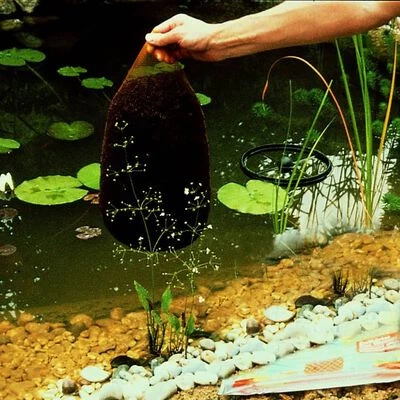 - Praktisch ontwerp: de vijverturf wordt in een 10 liter filternet aan de rand van de vijver in het water gehangen en blijft ca. 8 weken werkzaam en moet gedurende het jaar worden vervangen.