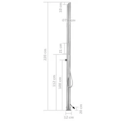 Deze douche is gemaakt van roestvrij staal dat weerbestendig is. Het douchesysteem heeft een hoofddouche en een handdouche om aan al je tuinier-, bewater- en douchebehoeften te voldoen. De handdouche heeft een dubbel vergrendelde slang die flexibel en 1,5 meter lang is. Hij heeft ook een messing handdouchehouder.