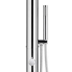 Deze douche is gemaakt van roestvrij staal dat weerbestendig is. Het douchesysteem heeft een hoofddouche en een handdouche om aan al je tuinier-, bewater- en douchebehoeften te voldoen. De handdouche heeft een dubbel vergrendelde slang die flexibel en 1,5 meter lang is. Hij heeft ook een messing handdouchehouder.