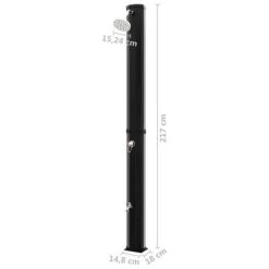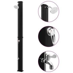 De zonne-energie die de douche absorbeert, verwarmt het water in de tank zodat je kunt genieten van een perfecte douche! De temperatuur van het water kan worden verwarmd tot maximaal 60 ℃. De douche is uitgerust met een watertank van 35 liter. Er wordt ook een kraan meegeleverd om aan je andere waterbehoeften te voldoen. De schroeven zijn inbegrepen om de douchebak stevig en stabiel op elk plat oppervlak te monteren. Deze solardouche heeft een chique uitstraling en is bedoeld om in je tuin of bij je zwembad te passen.