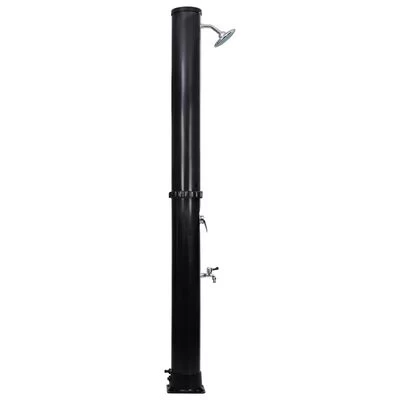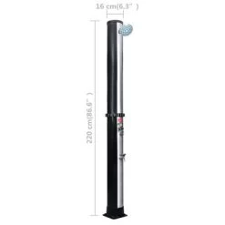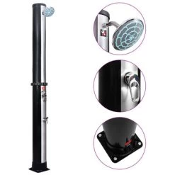 Een kraan is inbegrepen om de waterstroom te regelen. De levering bevat 4 schroeven om de douchebak stevig en stabiel op elk vlak massief oppervlak te monteren. Deze solardouche heeft een net een mooi uiterlijk waardoor hij een perfecte aanvulling op je tuin of zwembad is.
