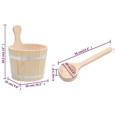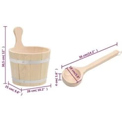 Met deze eenvoudige maar praktische, houten sauna emmer en lepelset is je sauna-ervaring plezieriger en meer ontspannen.