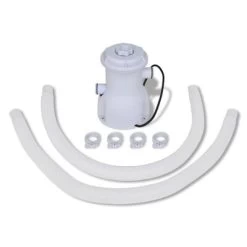 - Levering bevat 1 x pomp, 1 x filter, 2 x slang en 4 x metalen klem