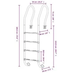 - Duurzaam materiaal: deze zwembadladder is gemaakt van 304 roestvrij staal, dat stevig en duurzaam is voor langdurig gebruik. Hij heeft ook een goede weerstand tegen corrosie en roest.