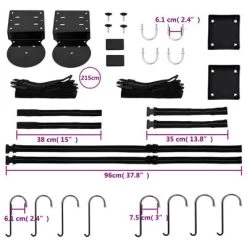 - 2 x riem voor bevestiging aan 2 kanten wanneer de overkapping volledig open staat op het zwembad (38 cm)